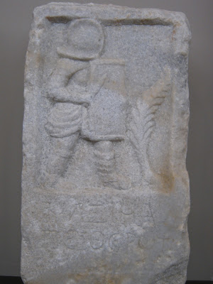 Next, we went over to the Roman section of the museum to hear Joni's report on the Via Egnatia. Sadly, the milestone we had hoped to see was on loan to another museum. Afterward, we wandered around the museum. Tristan, I took these pictures of gladiator sculptures for you!